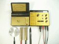 左手に上記の太い金属の棒を持たせて、そこに1.25Vの微弱電流を流し、右手の経絡ポイントから得られる「気」と思われるエネルギーの抵抗値を測定し、臓器・器官の状態を分析することが出来ると言う、東洋医学で言われるところの「気」のエネルギー測定器。